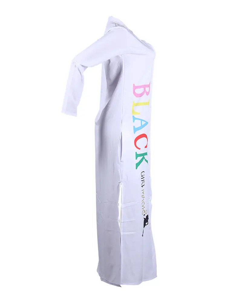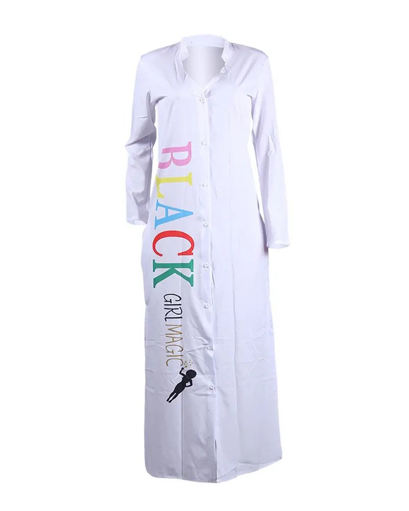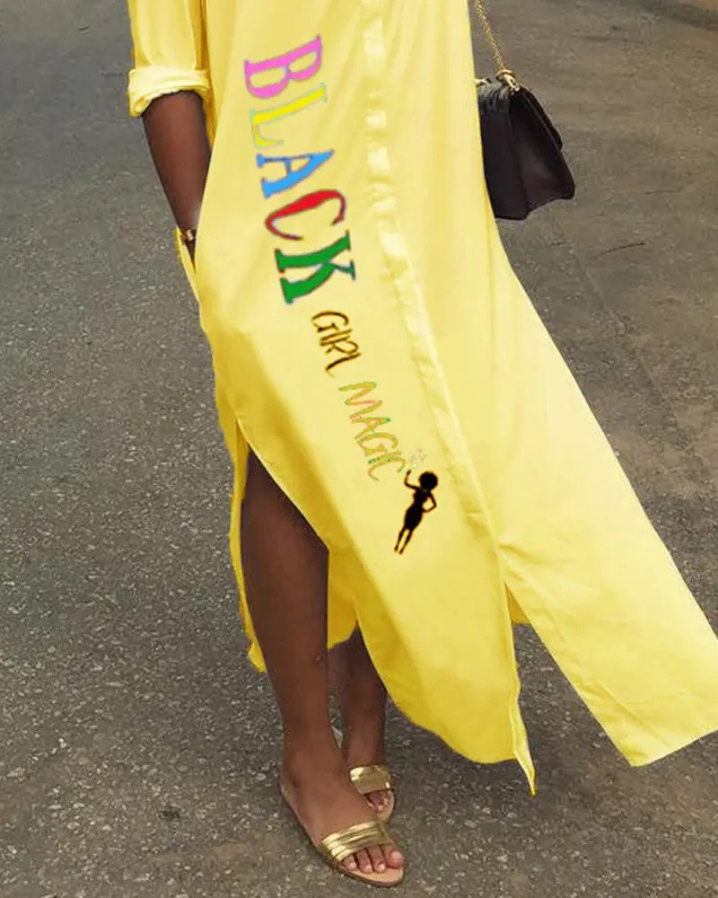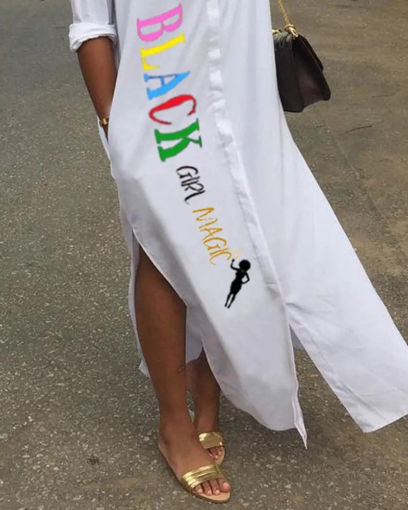 BLACK GIRL MAGIC!! Letter Print Split Hem Button Front Shirt Dress
