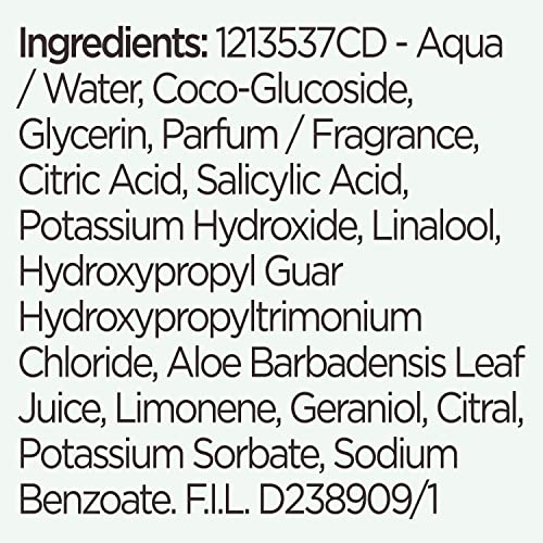 Details: Reimagine your wash day with our water-to-foam shampoo made with Aloe. Our Liquid Micellar technology acts like a magnet to attract and lift away buildup for a thorough scalp and hair cleanse without leaving hair feeling stripped. The targeted liquid formula provides easy scalp access as it instantly flows through hair and transforms into a gentle foam lather without harsh friction. It effortlessly works throughout, minimizing tangles and quickly rinses clean so there's no added weight from residue left behind. After one wash, scalp and hair feel clean, and hair feels soft and moisturized. One wash changes everything. We consider an ingredient to be naturally derived if it is unchanged from its natural state or has undergone processing yet still retains greater than 50 percent of its molecular structure from its original natural source.