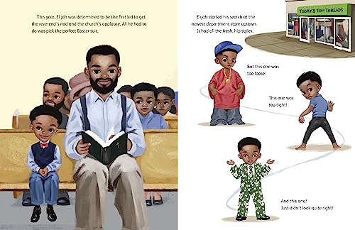 Elijah is on a mission to find the perfect church outfit for Easter. But when failed attempts at his town’s stores leave Elijah disappointed, an important conversation with Deacon Brown and Mother Green about tradition, culture, and clothing gives him the courage to create his own Easter masterpiece: a patchwork of perfection that tells his story with style.