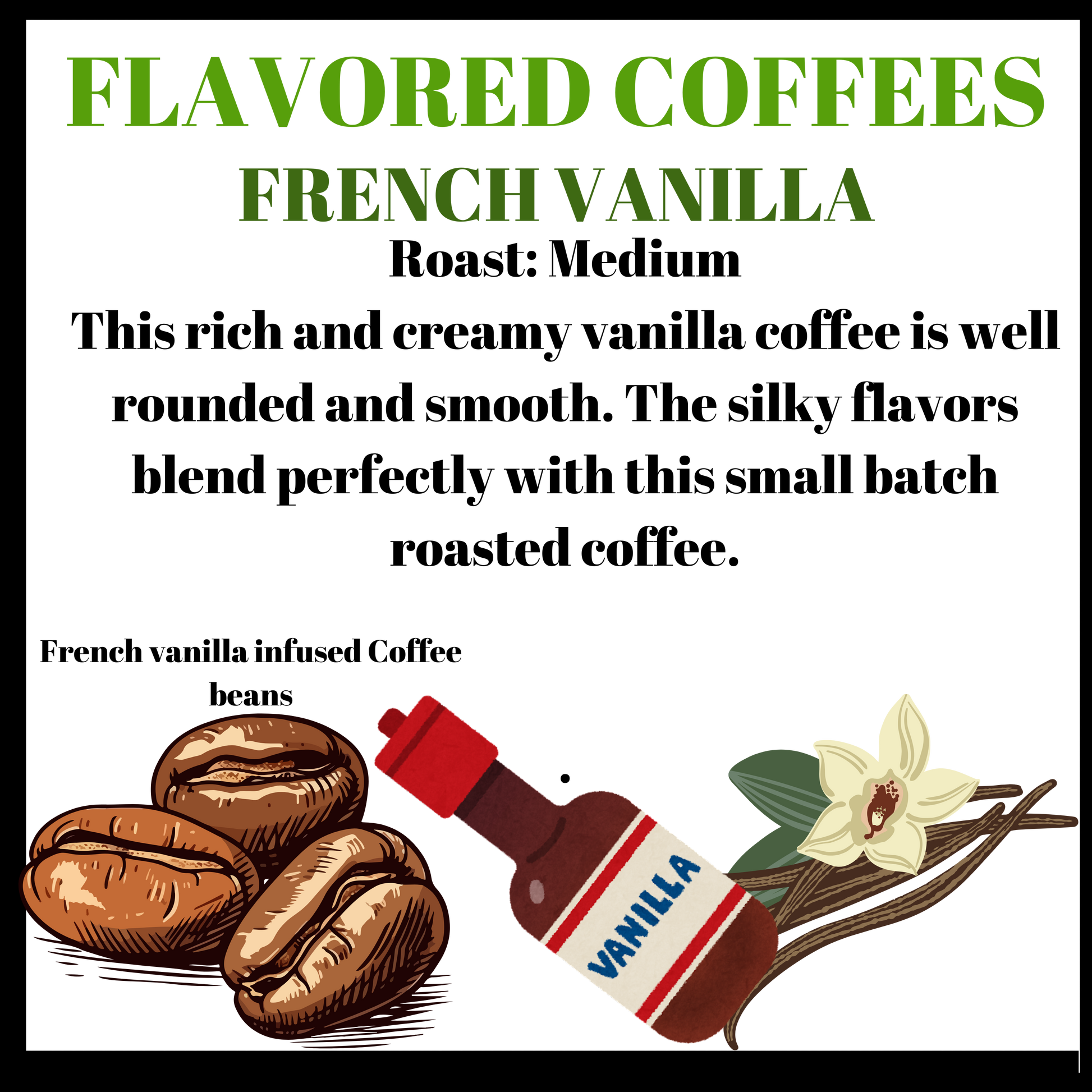 This rich and creamy vanilla coffee is well rounded and smooth. The silky flavors blend perfectly with this small batch roasted coffee.