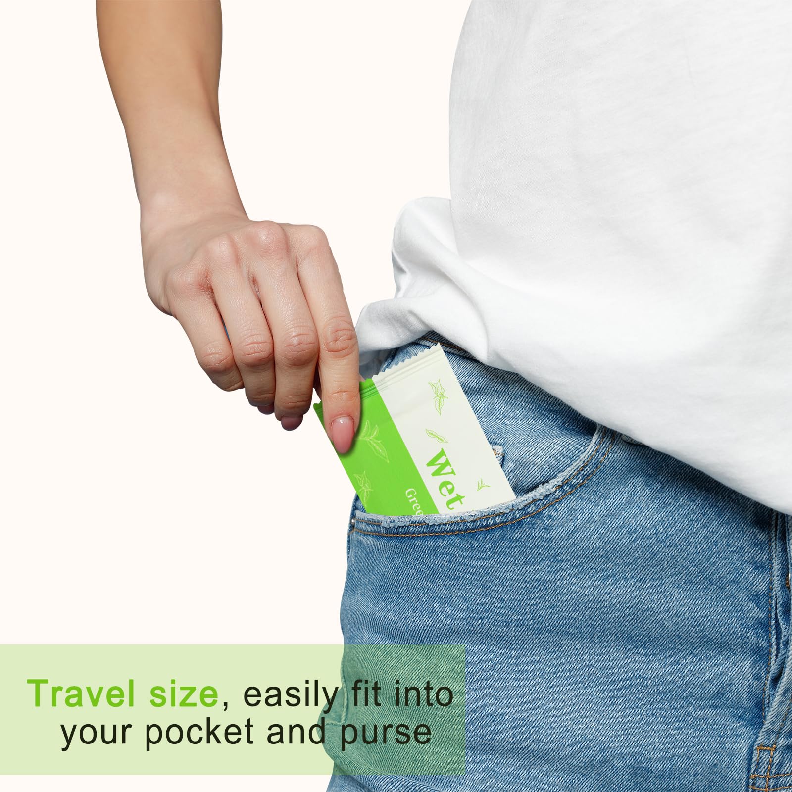 Hipruict Individual Hand Wipes, 500 PCS Wet Wipes Individually Wrapped, Wet Napkins Travel Size for Wedding, Barbecue, Restaurant, Green Tea Scent