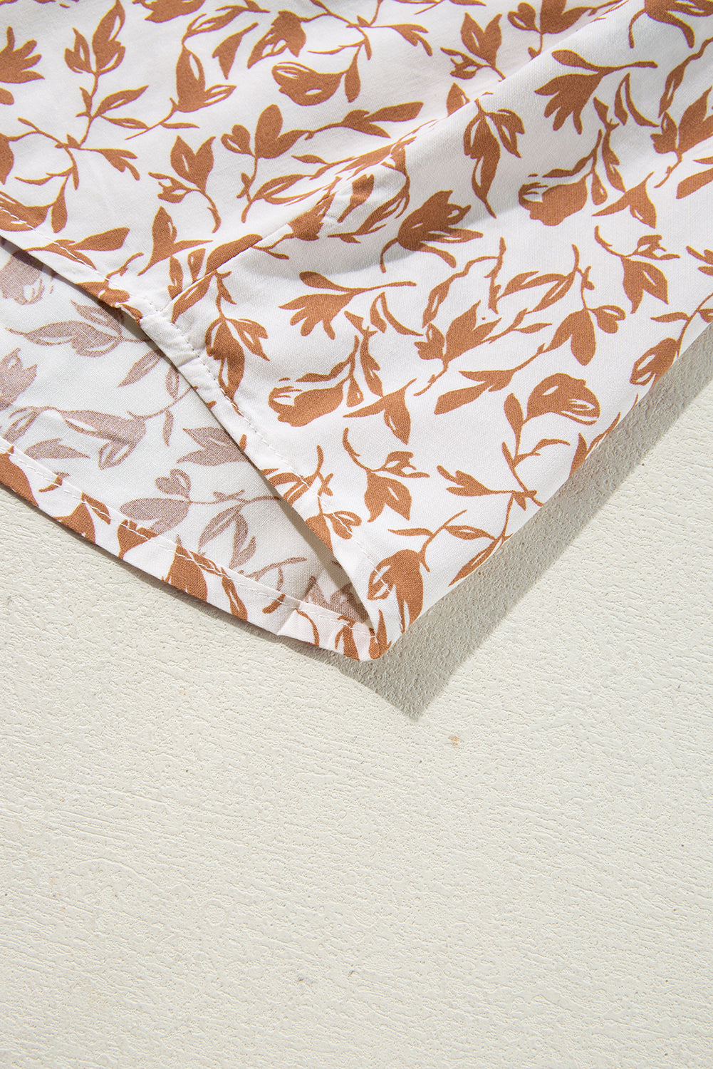 Khaki Printed Lace Detail Floral Puff Sleeve Fall Shirt