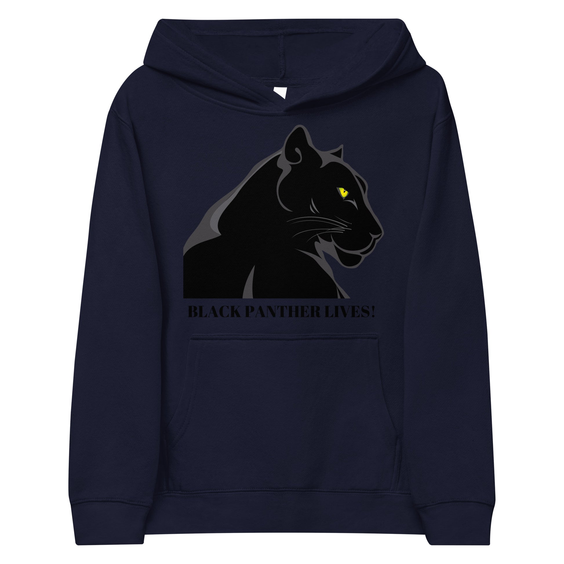 Young or old—Kids BLACK PANTHER LIVES! Unisex Fleece Hoodie by SobG Designs are one of those timeless pieces that fit seamlessly into everyone’s wardrobe. The kids fleece hoodie will easily become a trusted companion for all your kiddo’s adventures thanks to its soft and cozy feel. The hoodie is made from durable material and has elastic cuffs and a waistband that will ensure long-lasting performance.