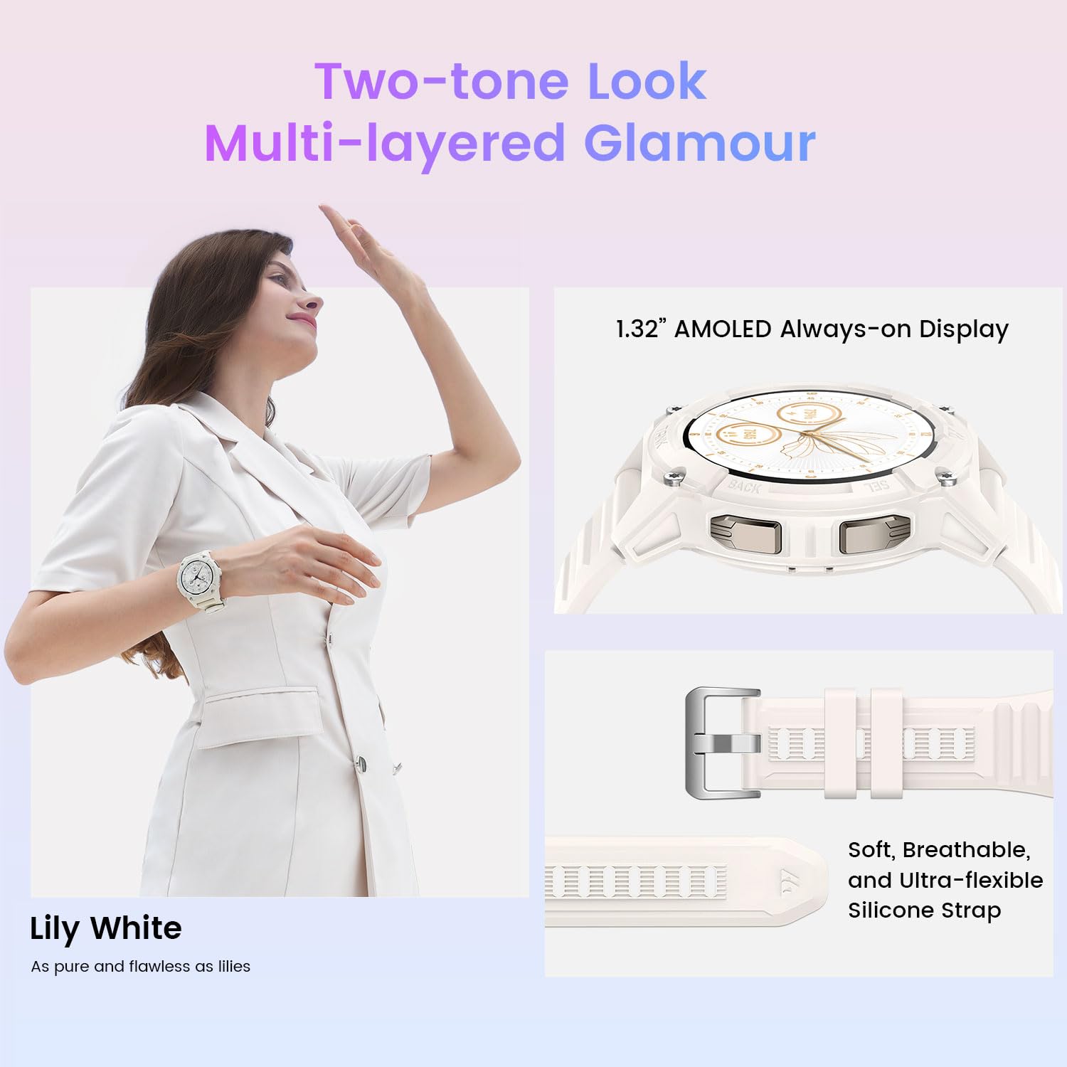 - ➤【Ultra-light Body & AMOLED Display】This smart watches for women weighs a mere 50 grams, with an ultra-soft silicone strap that offers an exceptionally comfortable and delightful wearing experience. 1.32-inch AMOLED display boasts a color gamut of up to 100% RGB, includes an always-on mode, double the brightness of other smartwatches, provide you an ultra-high-definition sensory experience and perfect for quick glances,