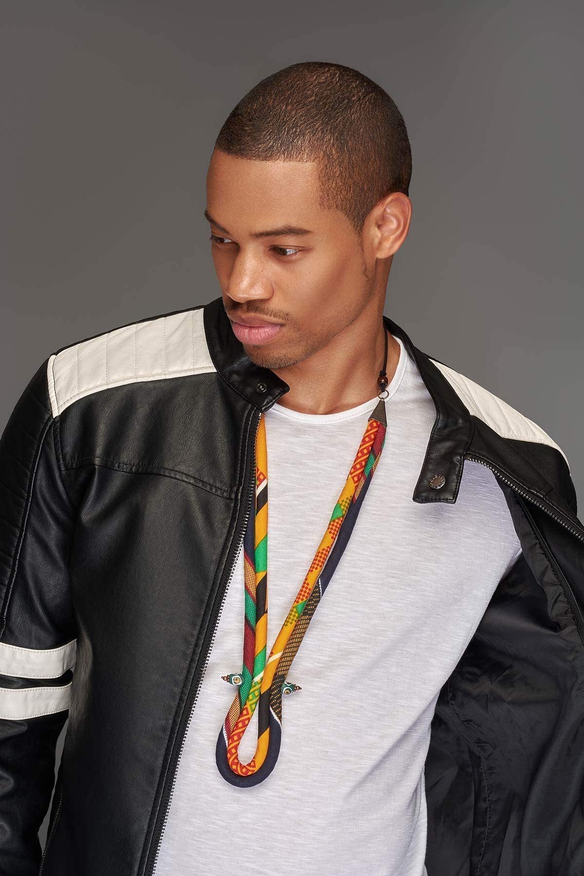 Male Kente African Necklace | Men’s Yellow and Black Kente Tribal Corded Necklace | Mens African Necklace | African Tie | Mens African Jewelry | Mens Ankara Necklace Afrocentric | Cloth & Cord