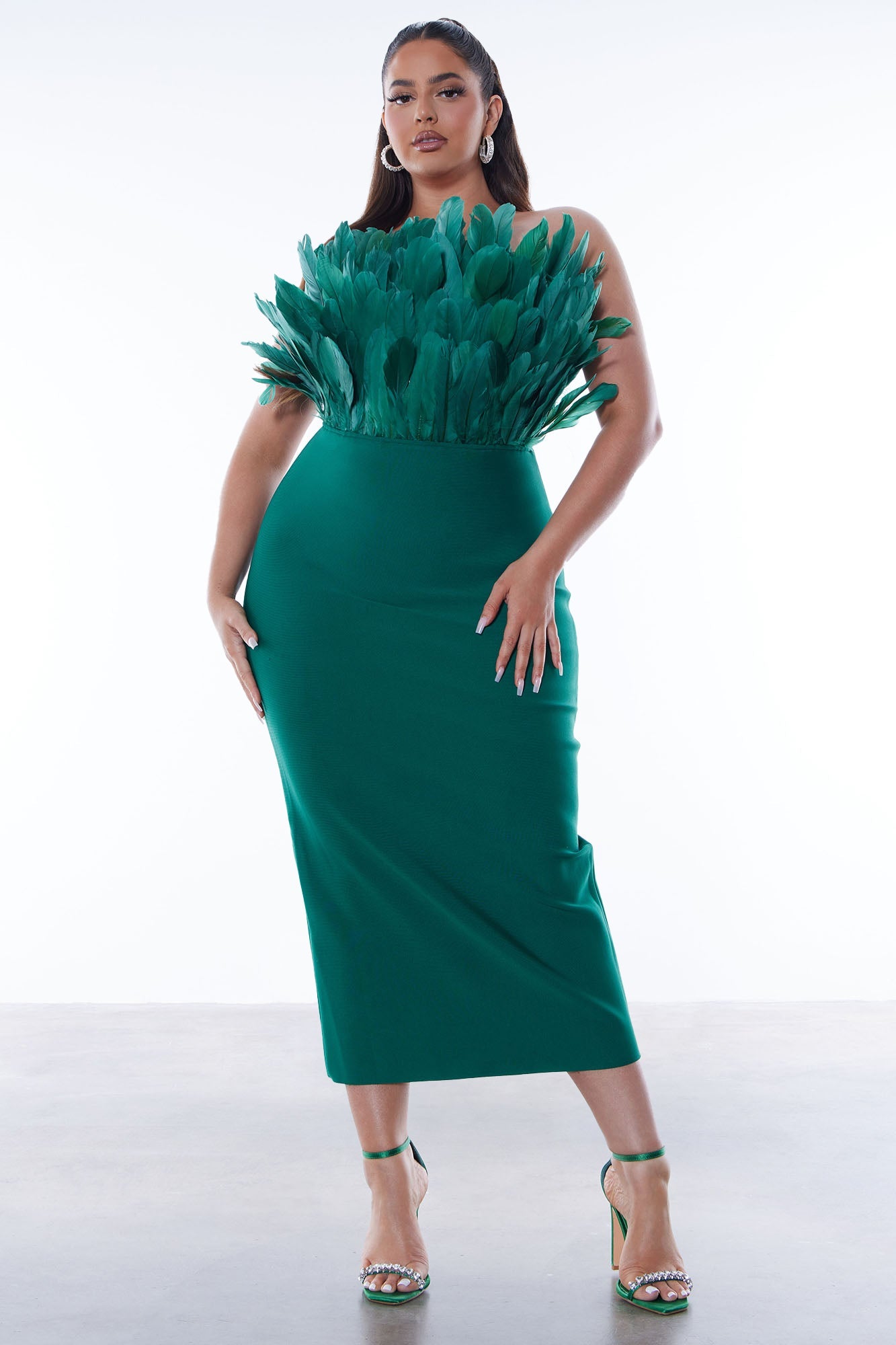 Unleash your inner fashionista with the stunning Marianna Bandage Midi Dress! Available in four gorgeous colors - bronze, hunter, magenta, and red - this dress is a must-have for anyone looking to make a bold statement. The bandage design not only flatters your figure, but the tube feather detail adds an extra touch of elegance. And with a back zipper and stretchy material, this dress is not only stylish, but also comfortable and easy to wear. Made with a blend of high-quality polyester and spandex, this midi dress is sure to turn heads wherever you go. Don't wait any longer, get your Marianna Bandage Midi Dress today!