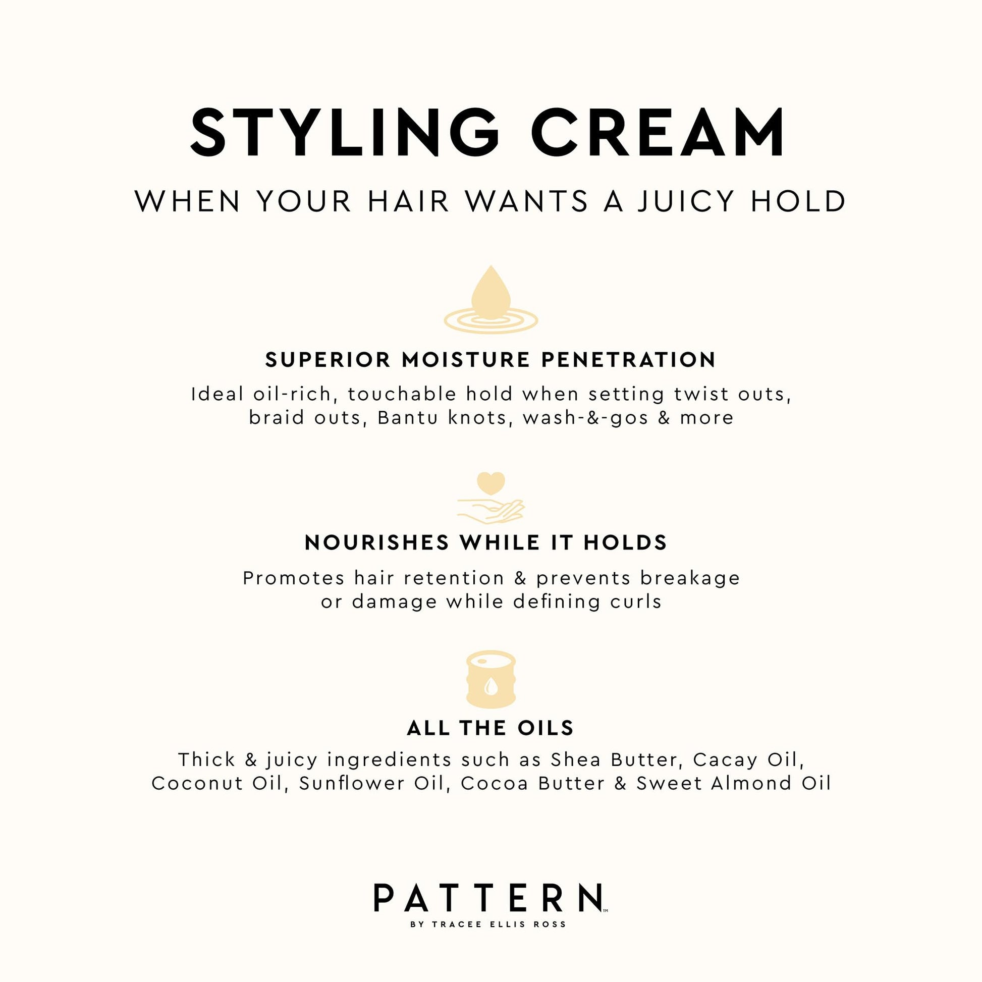 - Lookin' like a jar of thick buttercream, our Styling Cream is the curly hair cream of your dreams. This curl defining cream provides superior moisture penetration & the ideal oil-rich, touchable hold for a range of curl types and setting hair styles including twist outs, braid outs, Bantu knots, wash-&-gos & more.