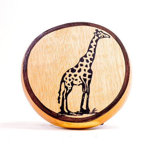 Bring the soothing sounds of the kalimba home with our 7-tine flat kalimba. It’s easy to play, just pluck the tines with your thumb. You can learn to play simple songs on it but even a series of random notes will make pleasant music. In fact, some people use kalimbas as stress relievers! These kalimbas come from Senegal and are encased in a hollowed gourd. They have a flat wooden bottom, which gives a bright, clear sound. These kalimbas are 6-10” across, weigh less than half a pound, and are easy enough for a child to play.