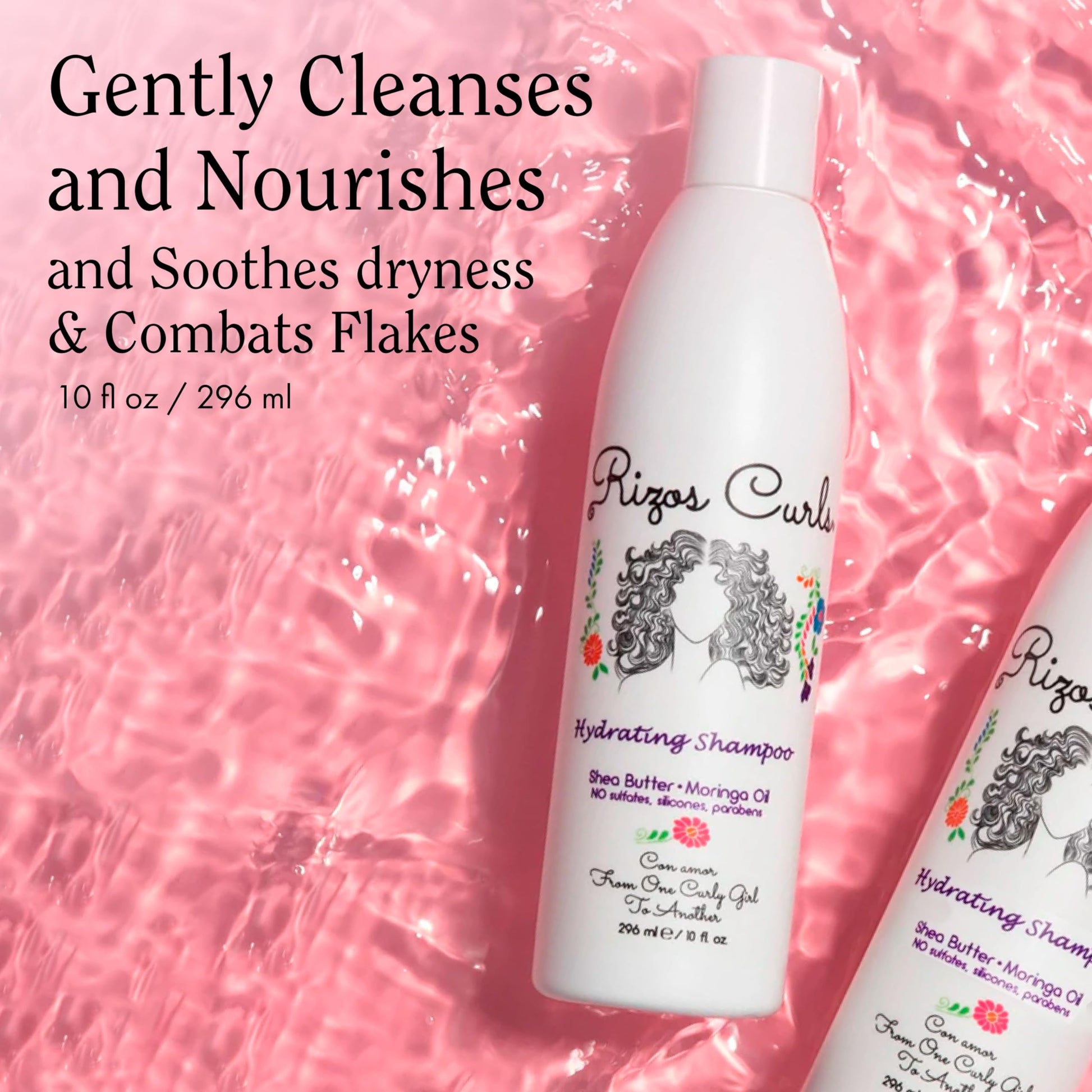 Rizos Curls Hydrating Shampoo, Gently Cleanse, Deeply Moisturizes & Nourishes Scalp, Soft & Healthy Hair from Shea Butter & Moringa Oil, For All Hair Types 1a - 4c, 10 oz