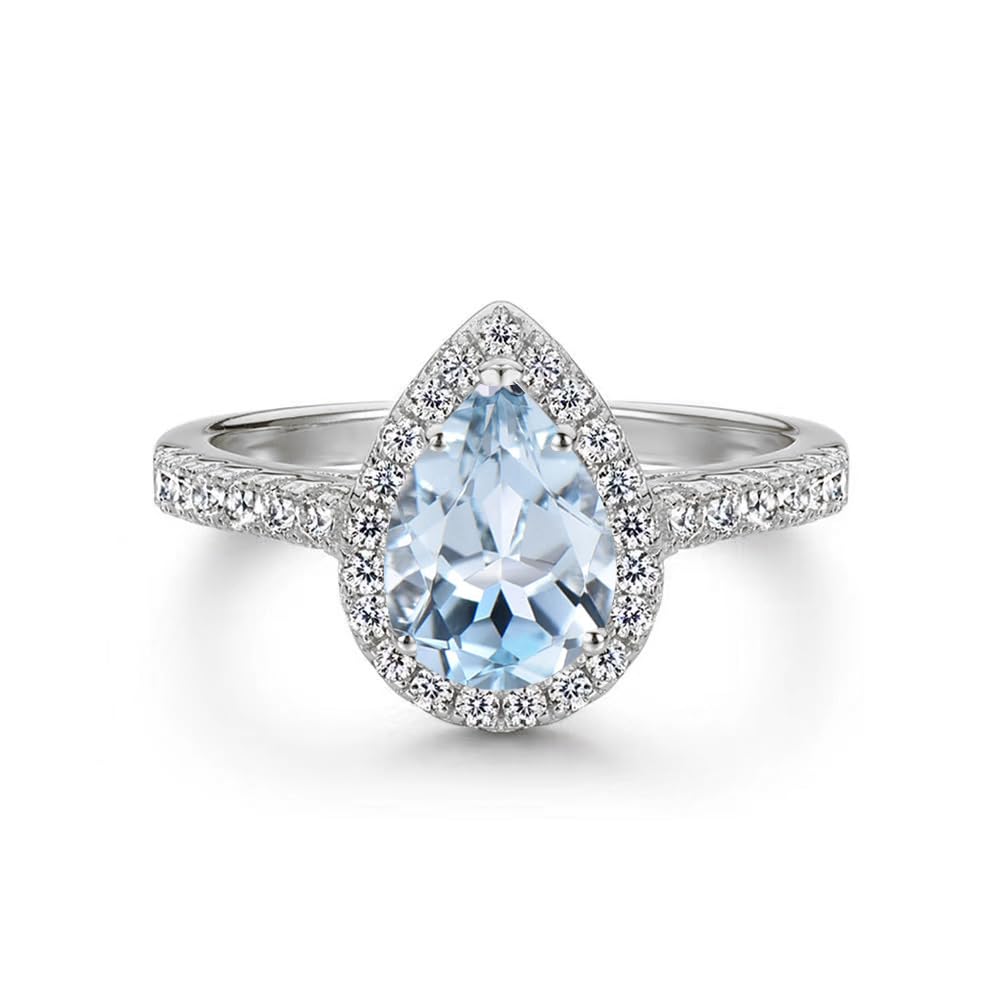 - Stone - Main stone:1 or 2 carat natural aquamarine(pear cut), side stone: small diamonds; HI Color and I2-I3 Clarityl. Diamonds is durable, brighter than other stones and will not let you down. Perfect cutting and superb inlay technology improve the value of ring , it is a good choice.