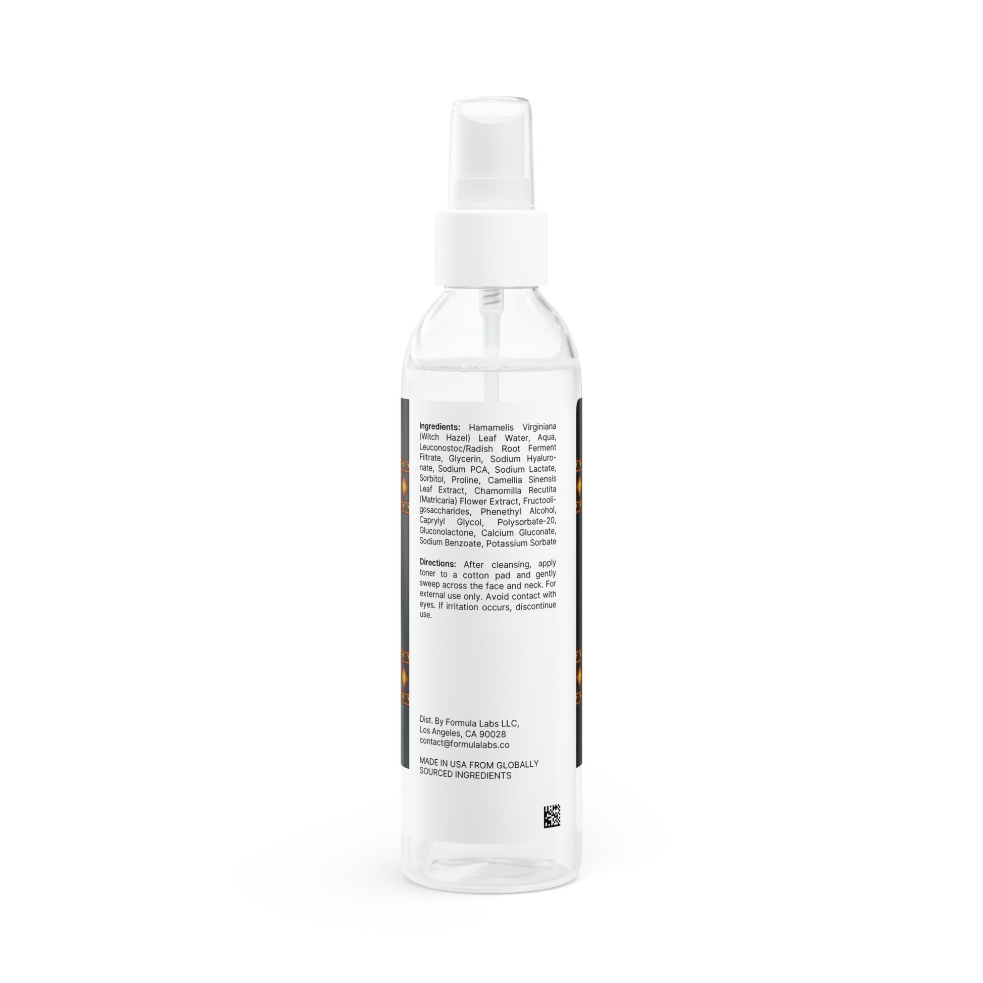 Ingredients: Hamamelis Virginiana (Witch Hazel) Leaf Water, Aqua, Leuconostoc/Radish Root Ferment Filtrate, Glycerin, Sodium Hyaluronate, Sodium PCA, Sodium Lactate, Sorbitol, Proline, Camellia Sinensis Leaf Extract, Chamomilla Recutita (Matricaria) Flower Extract, Fructooligosaccharides, Phenethyl Alcohol, Caprylyl Glycol, Polysorbate-20, Gluconolactone, Calcium Gluconate, Sodium Benzoate, Potassium Sorbate.