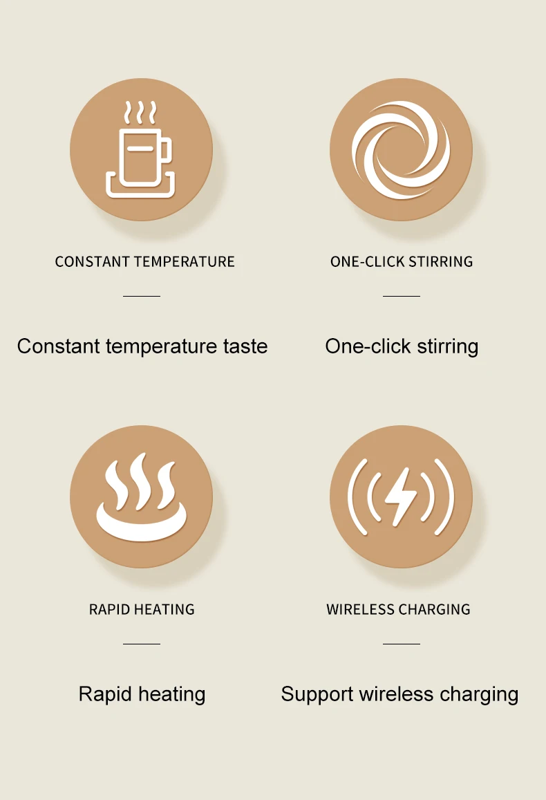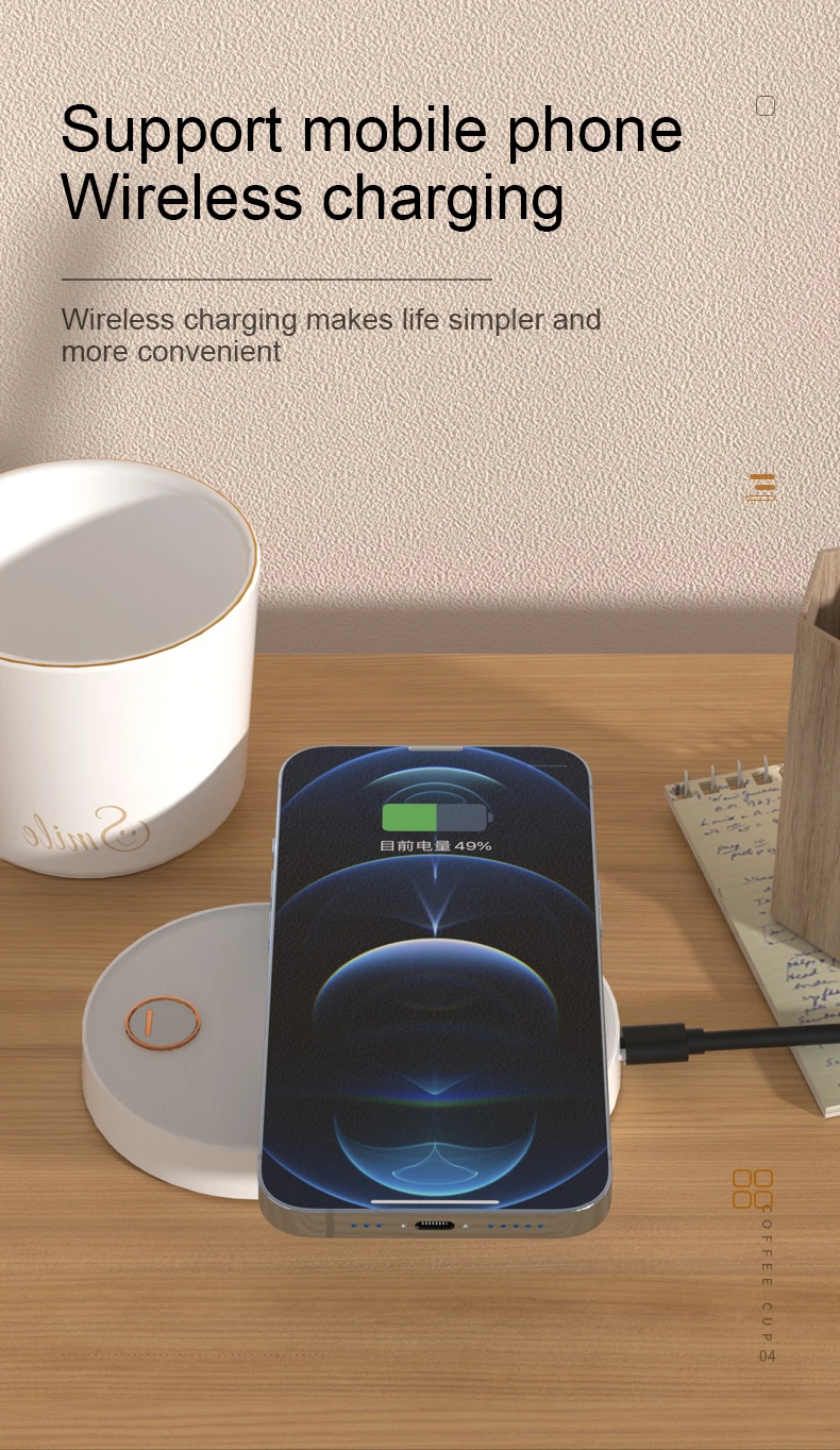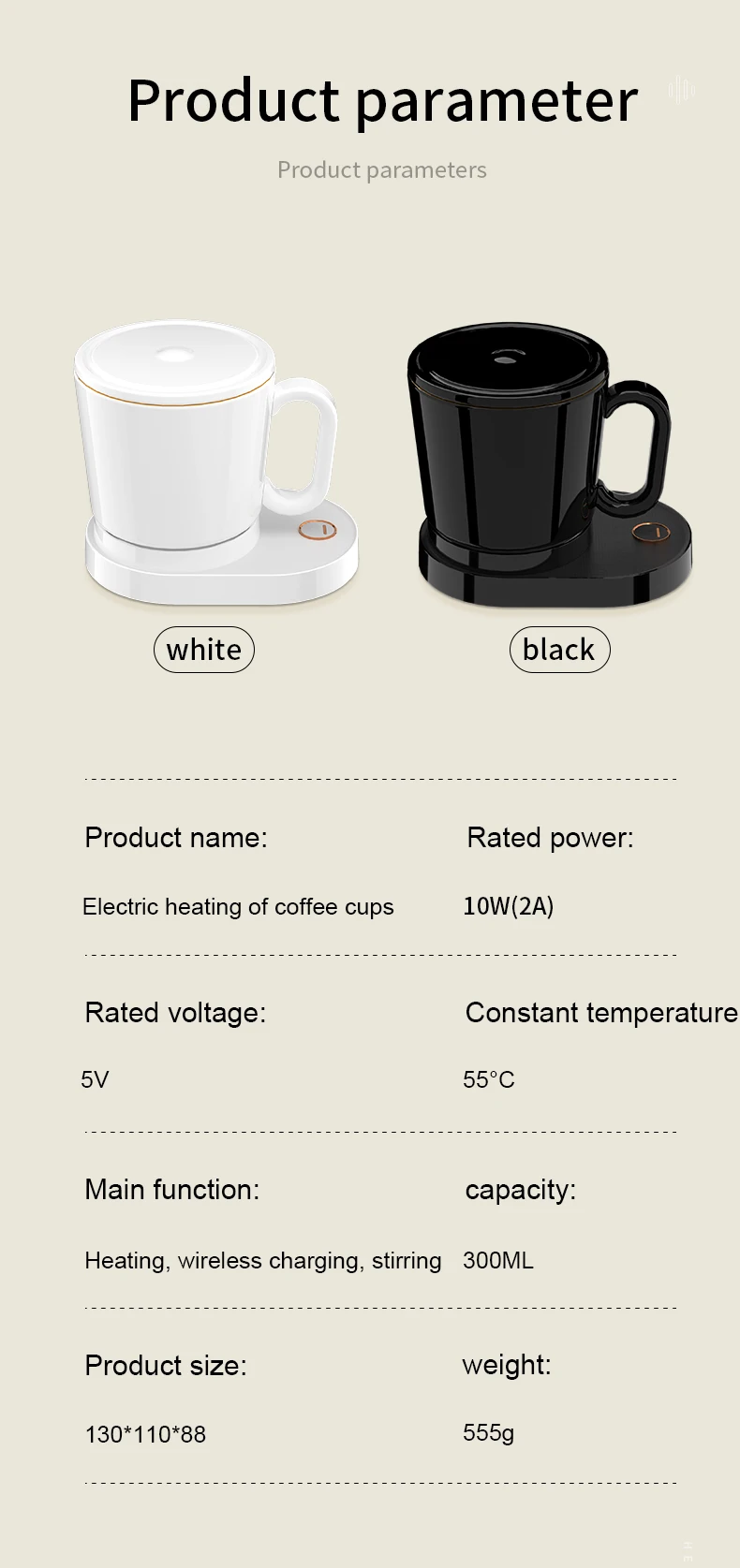 Temperature Control Self Heating Electric Mug Coffee Heater Cup 55 Degree Ceramic Smart Mug Warmer With Wireless Charging