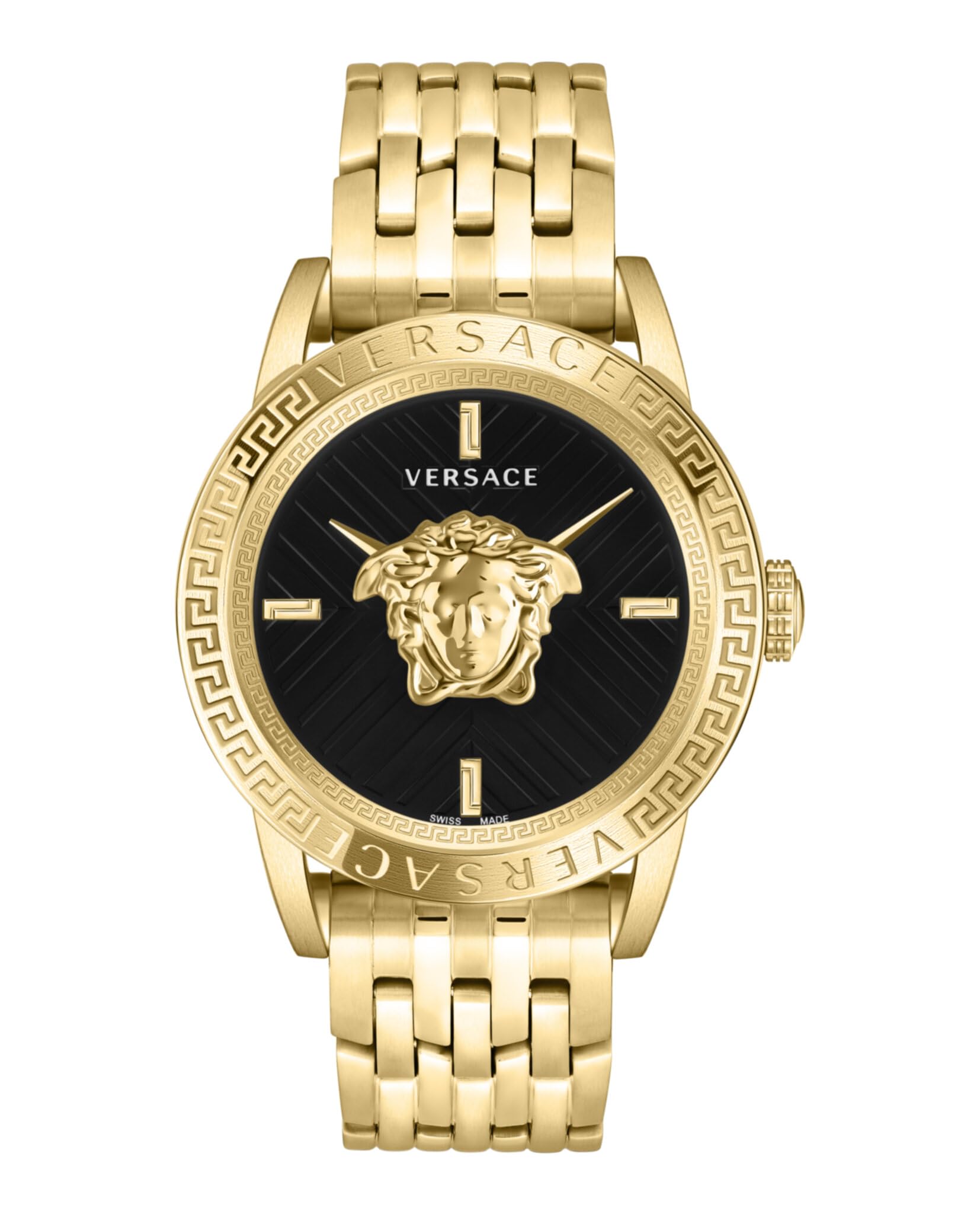 - Iconic Versace Design: Showcases a bold black dial adorned with the signature Medusa logo at 12 o'clock, encapsulating the brand's luxurious aesthetic.