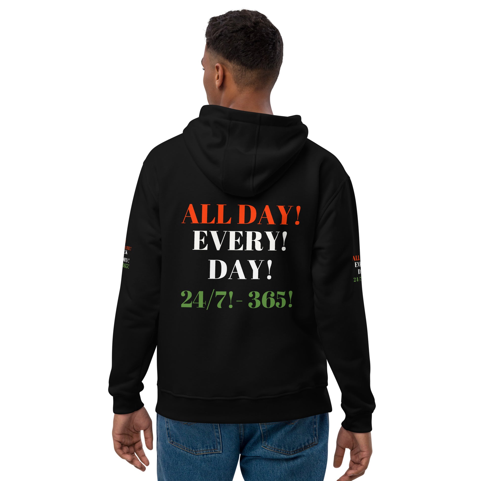 Meet the WE CELEBRATE BLACK HISTORY 24/7 Premium Eco Hoodie by SobG Designs an eco hoodie made of organic and recycled materials. With its comfortable fit, front pouch pocket, and double-layered hood, the hoodie is a classic streetwear piece that can be styled with multiple different looks.
